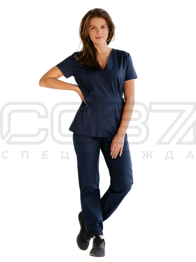 Костюм санитарный женский АР407 цв.тёмно-синий тк.хлопок/спандекс в Казани
