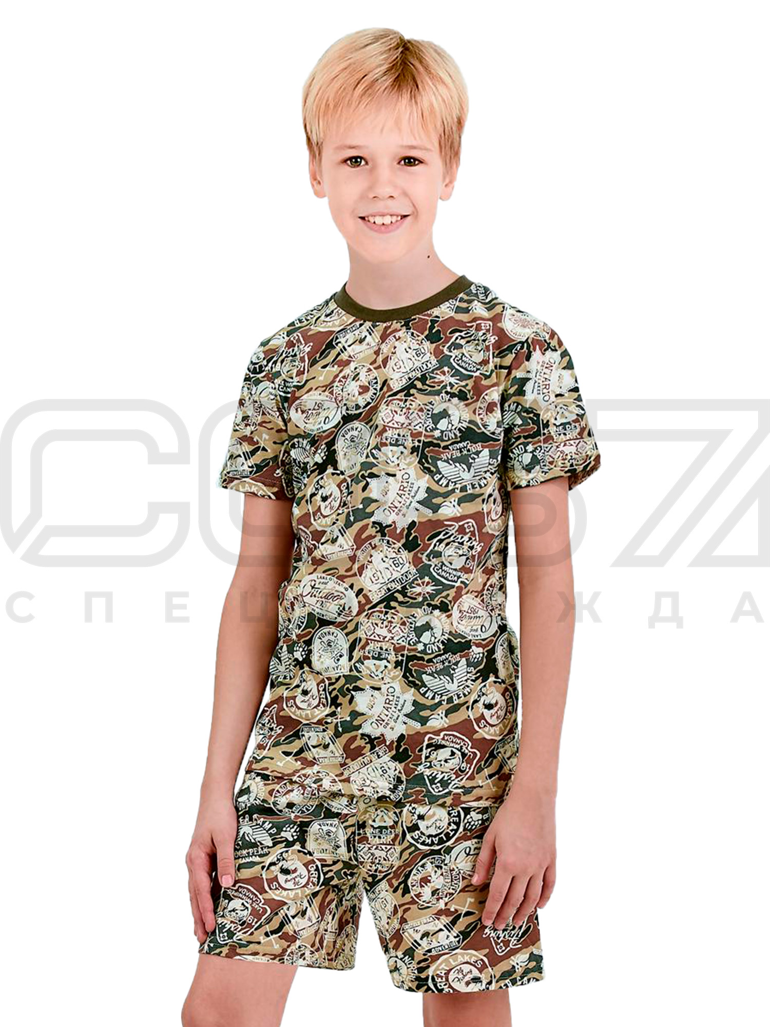 Комплект трикотажный "Game" цв.кмф/коричневый/принт тк.кулирка в Казани