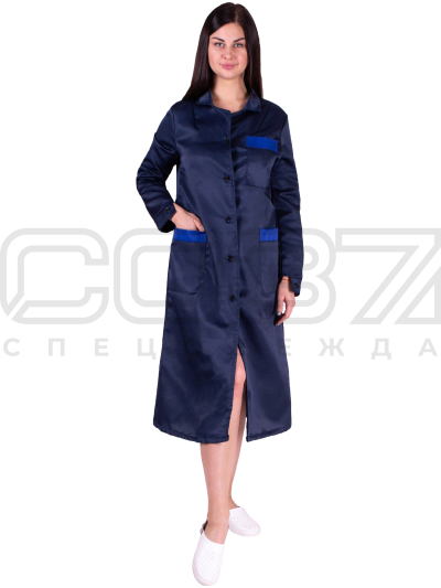 Халат рабочий женский "Конструктор" цв.т.синий/василёк тк.смесовая в Казани