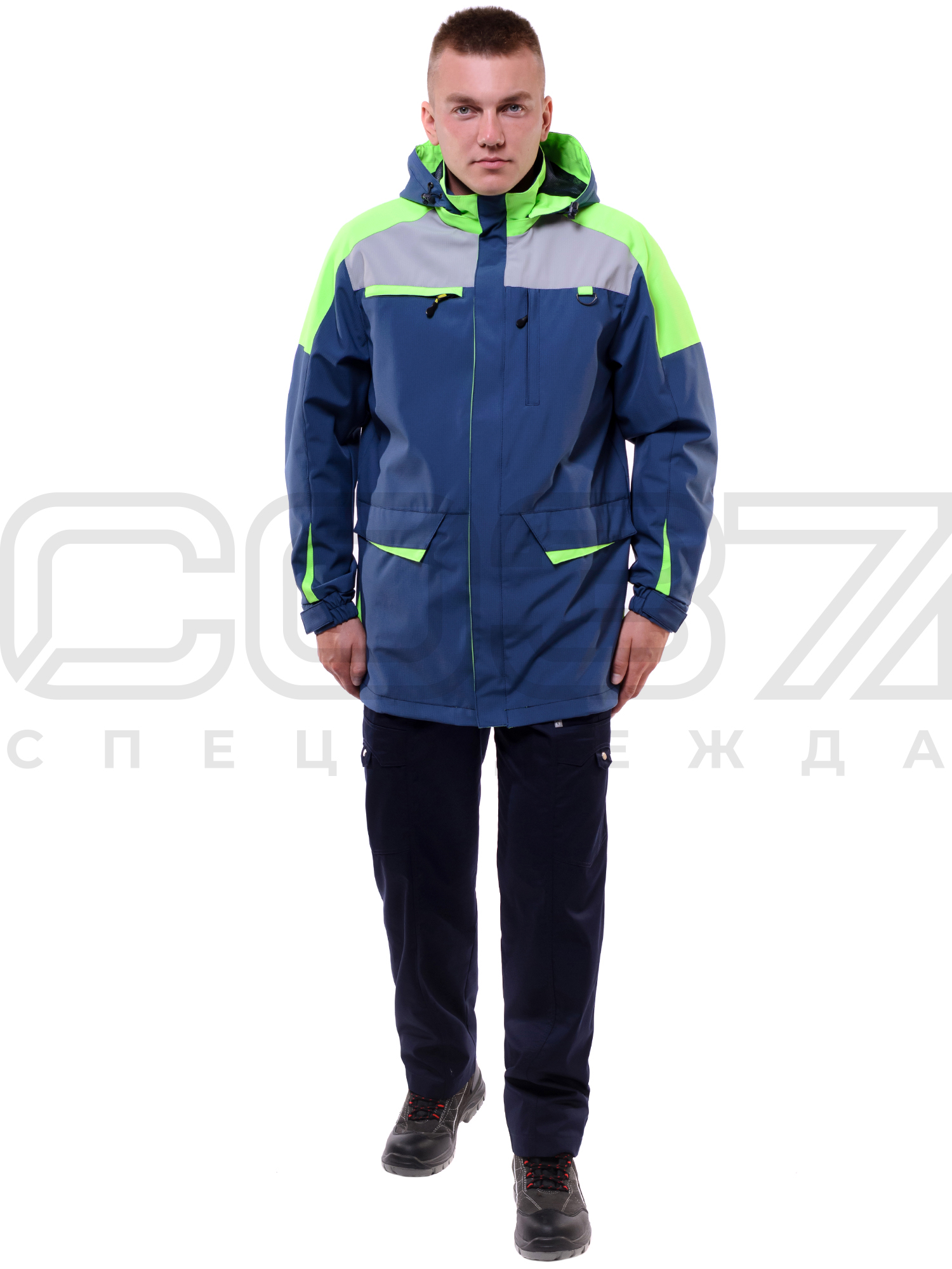 Куртка-ветровка "Феникс" цв.т.синий/св.серый/неон тк.рип-стоп двойной в Казани