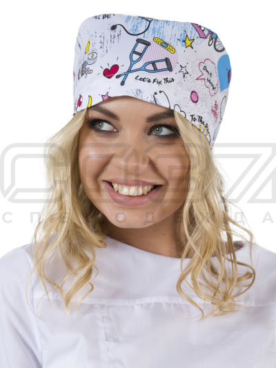 Колпак медицинский на резинке ИМ603(ST10) цв.белый/рисунок тк.стрейч в Казани