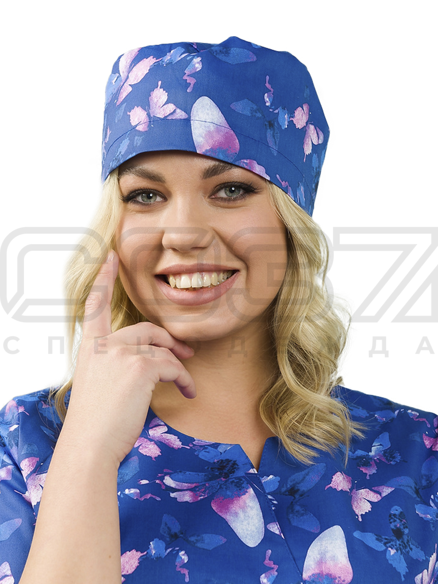 Колпак медицинский на резинке ИМ603(ST11) цв.синий/рисунок тк.стрейч в Казани