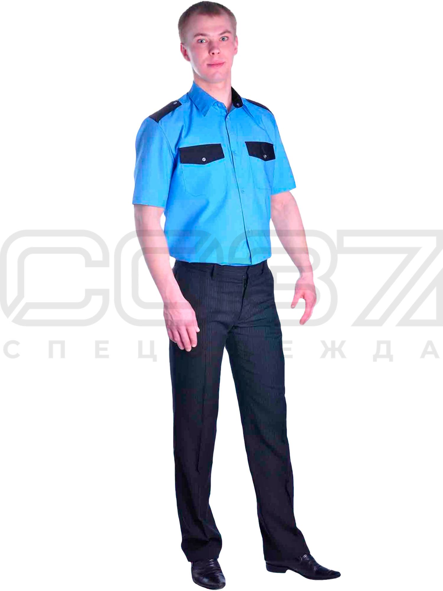 Рубашка охранника "Секьюрити" с коротким рукавом цв.голубой тк.тиси в Казани