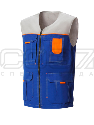 Жилет рабочий летний "Абразив" цв.василёк/св.серый тк.смесовая в Казани