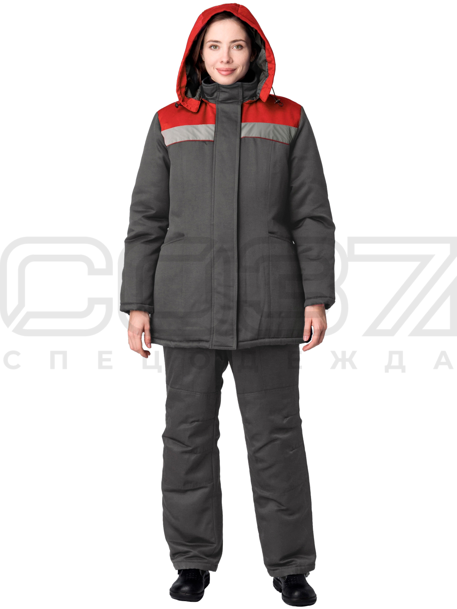 Куртка рабочая зимняя женская "Метелица" с СОП цв.т.серый/красный тк.смесовая в Казани