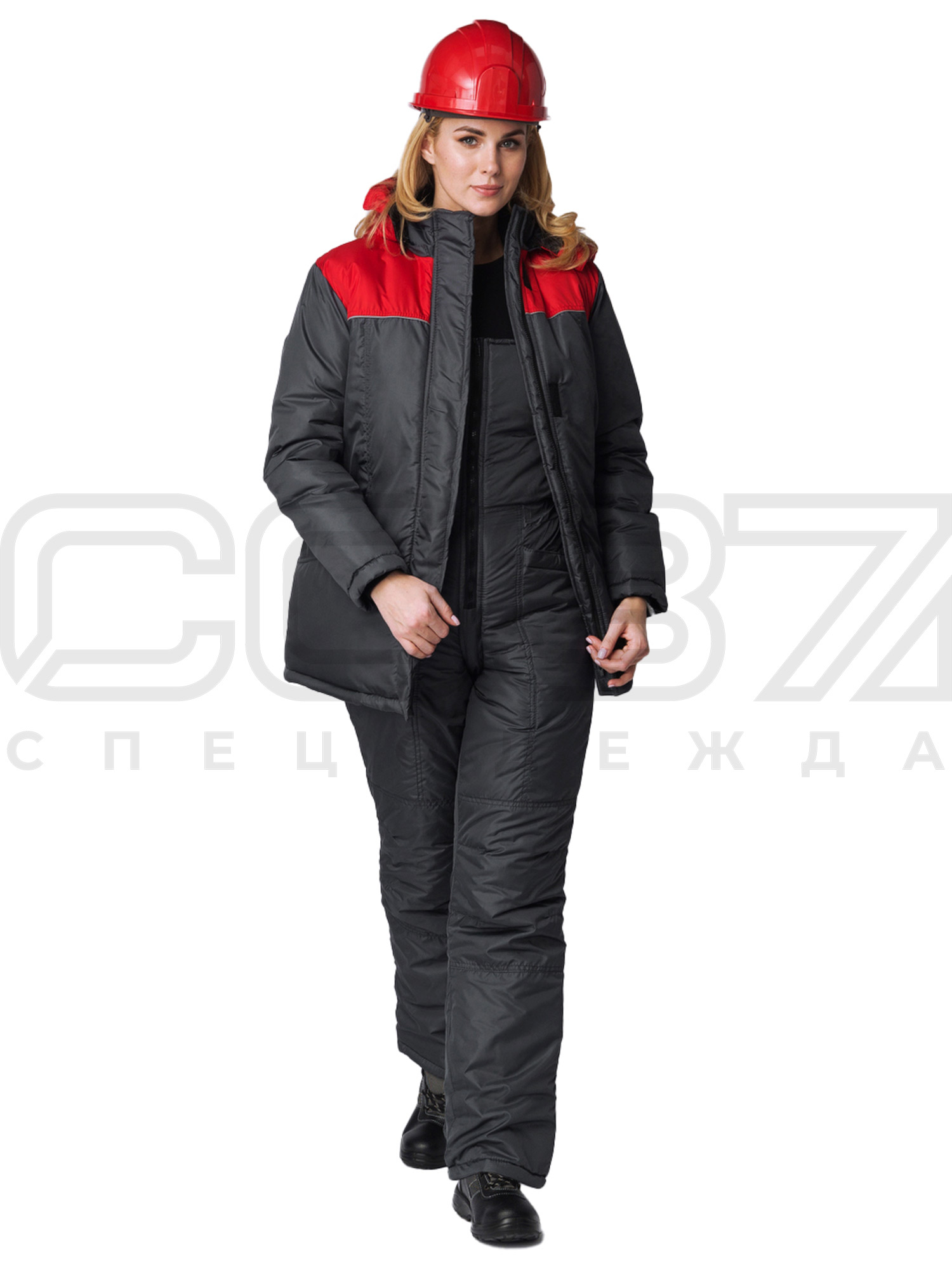Куртка зимняя женская "Артемида" цв.т.серый/красный тк.дюспо в Казани